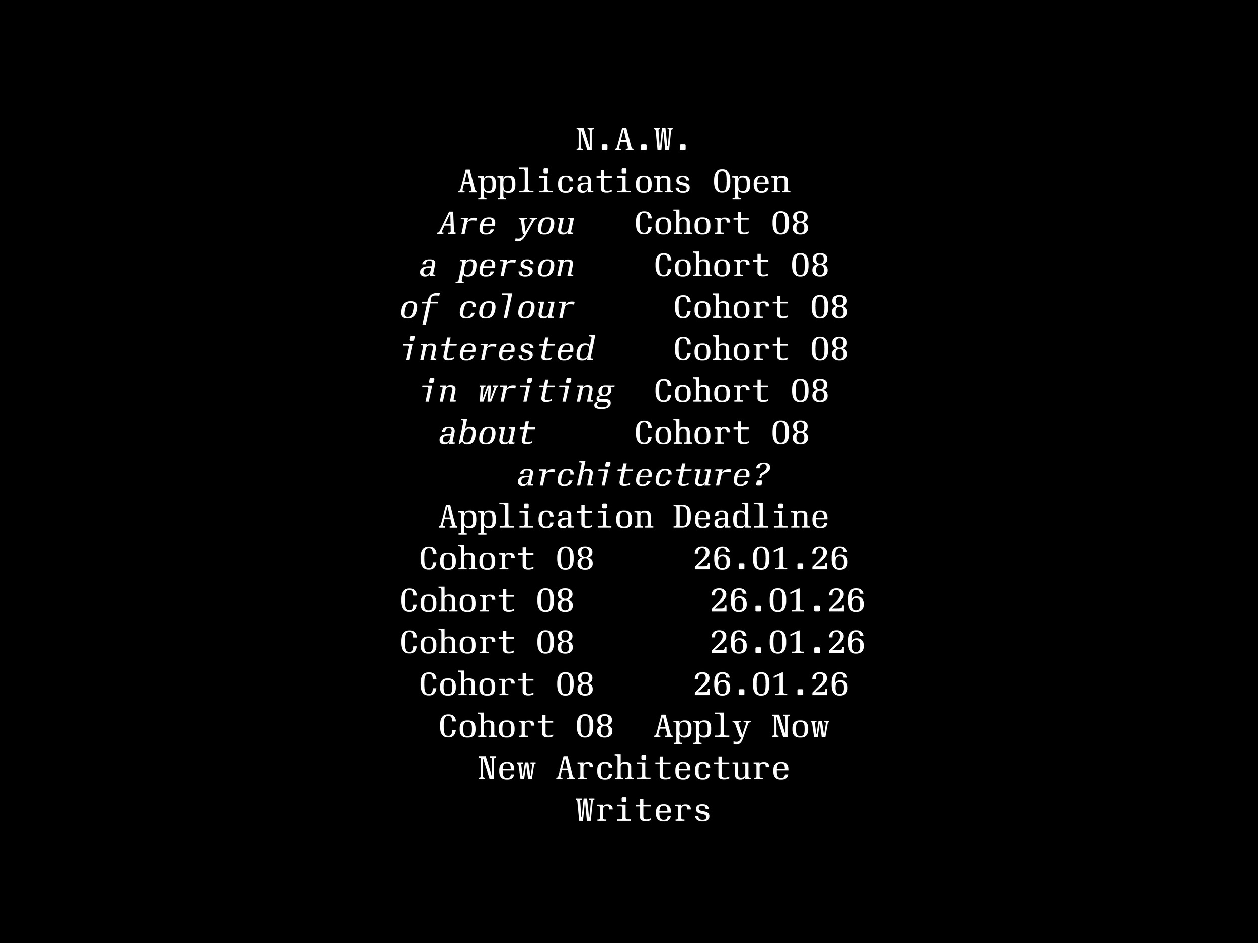 Join the eighth cohort of New Architecture Writers. Deadline: Monday 26 January 2026, 10am GMT